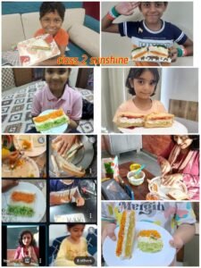 Students of class 2 made Tri – colour sandwiches where students used carrots , cucumber , cheese and bread to prepare beautiful sandwiches reflecting the colours of our Tiranga .Their plates looked as vibrant as their patriotic spirit .